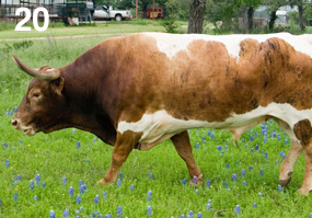 These measurements can be adjusted to a Horns per Month of Age (HMA), which is calculated by dividing the number of months of age into the horn measurement. For example, a 48-month-old animal with 50" of horn would be 50 / 48 or 1.04" per month of age. It is not uncommon for commercial ranchers to cross breed longhorns with other breeds, thus increasing hybrid vigor and easy calving characteristics. This is especially true in warmer climates where purebred longhorn cattle excel in this environment.